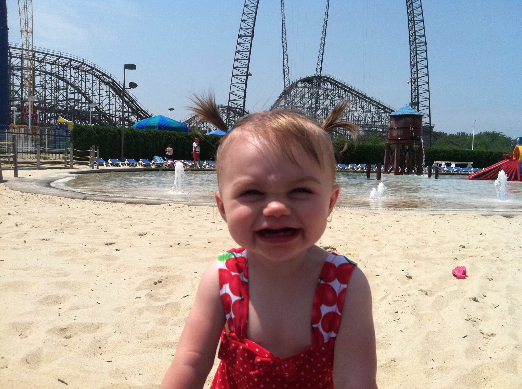2 weeks ago she wanted nothing to do with cold water…meaning anything slightly cooler than the air. This past week…she wants in. It doesn’t matter if it’s hose water on the slip and slide (which happens to be a bigger hit with her than her older sister)…she wants in it…and she wants to drink it all. Lake, Chlorine, Hose,Bath…no preference. And today…she sucked down Icee right out of the straw. (Ha! I knew you knew how to do that! Anyone know how to make milk taste like Icee???)