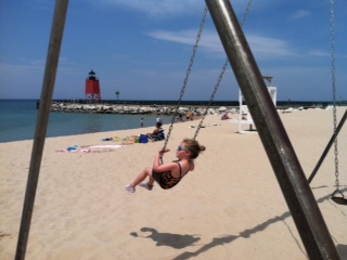 Clearly still a little out of it (she refused to take her tennis shoes off on the beach), she had me push her on that swing for a long time.
