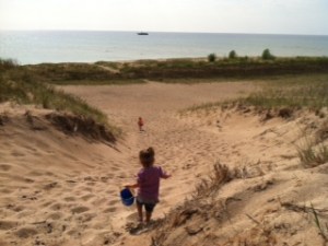 Thankfully, my husband is a living trip ticket, and always has something on the ‘to-do’ list to rescue everyone’s mood. After driving through hours of rain and 17 million “THIS IS TAKING TOO LONG’S,” we were hiking through the woods and onto some hidden sand dunes off the coast of the beautifully blue Lake Michigan…under sunny skies.