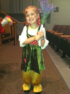 She did it. She did the whole dance. It was like watching a completely different kid up there. Even while her little friend fixed the strap of her costume for her, she continued right along with her steps…big smile on her face the whole time…and quite a few waves to us. As the dance ended, she fought her way right to the front…I still have no clue if she was supposed to or not…and proceeded to be the last one to fall down on ground with the rest of her sleeping orphan Annie cast-mates. She was smiling at us the whole time.