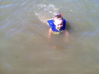 “This is fun! I”m swimming!!!” little Lo happily screeched as she bobbed up and down in her life jacket.