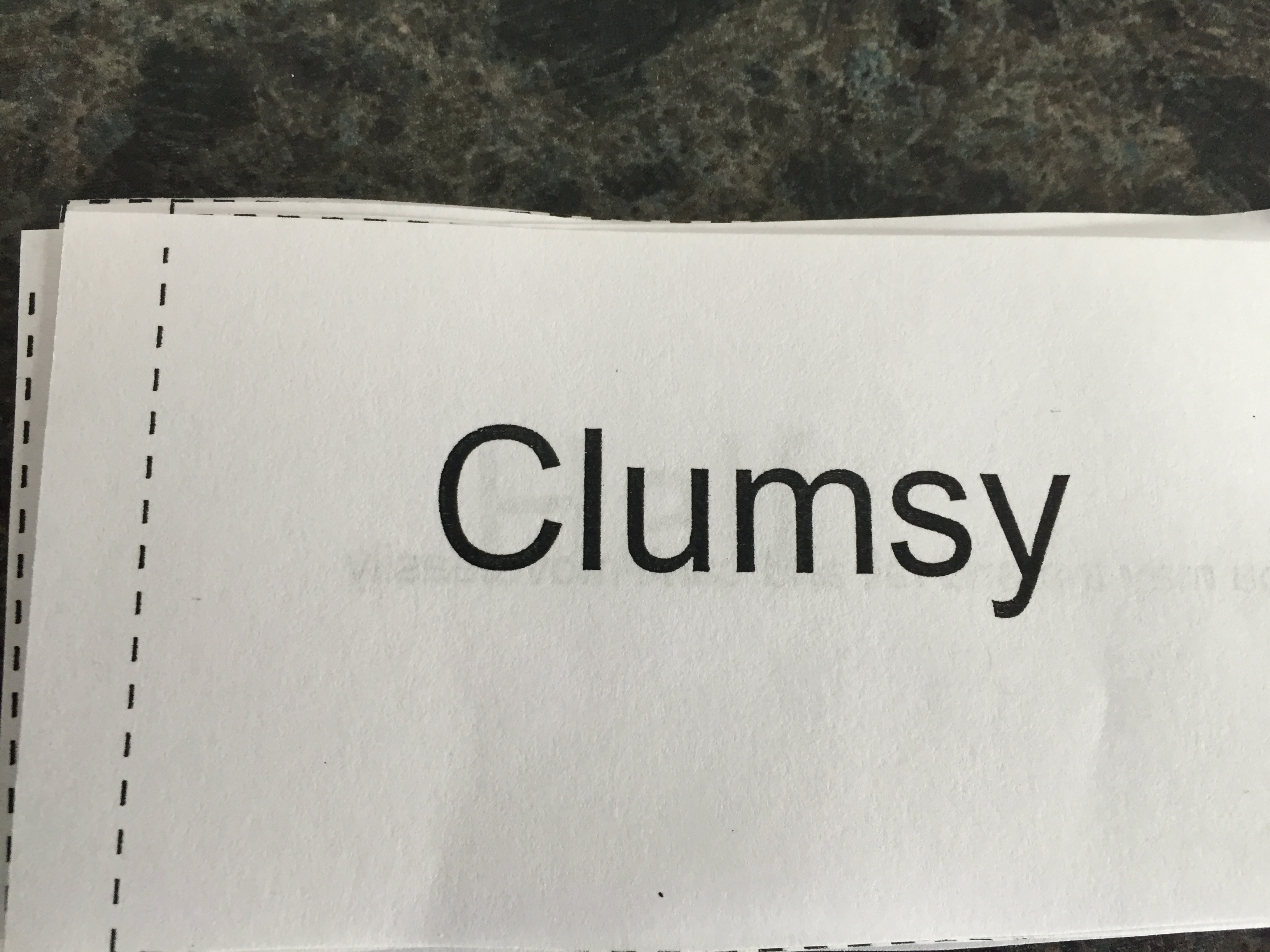 When I first got the idea to write this blog I stashed only two cards from last week’s pile to remind me to write it. “Defeated,” and “Curve.” This week, we got a whole new stack of words.